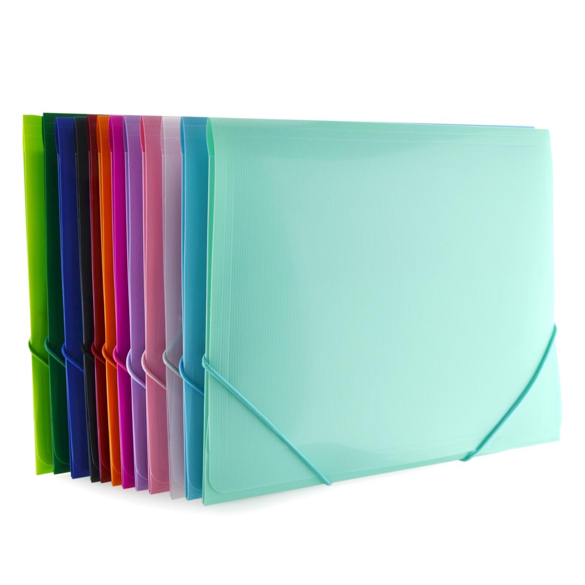 AGOTADO TEMPORALMENTE · 3 Solapas. · Material extra rígido y resistente. · Cierre de gomas más anchas. · Presentado en bolsa con 10 unidades. · Tamaño 315 x 250 mm. · Formato A4+