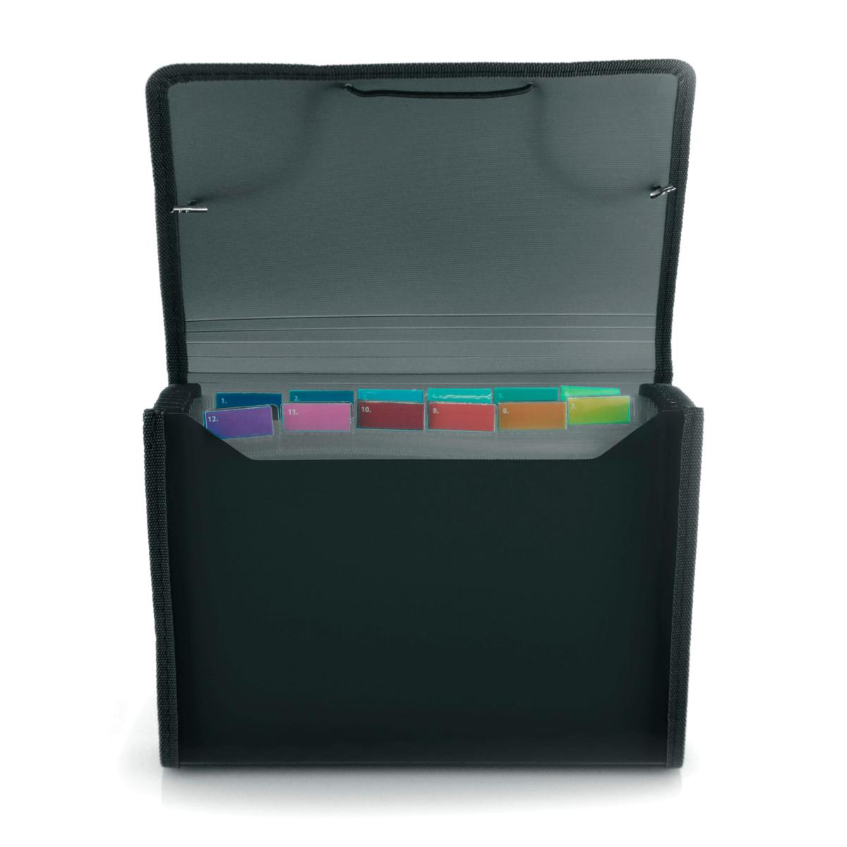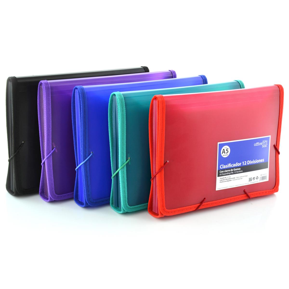 Carpeta Clasificadora A5 con 12 Divisiones con Cierre deGomas y Bordes Reforzados en Tela, Incluye 24 Etiquetas para personalizar eIdentificador interior, 100% Reciclable.
